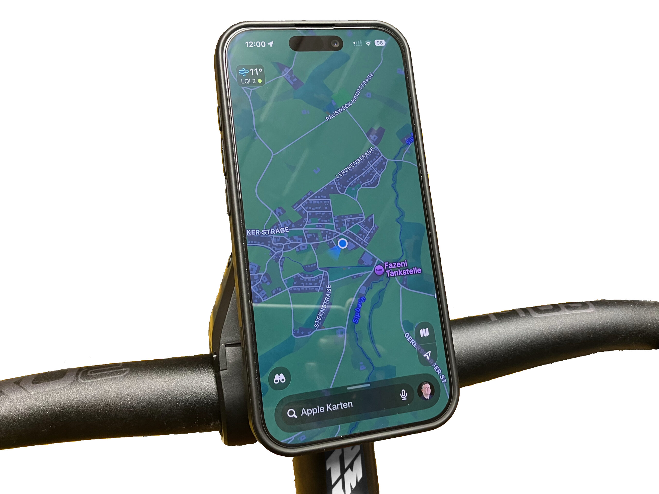 Der Adapter wird im 3D-Druckverfahren aus PETG-CF gefertigt. Dieses carbonfaserverstärkte Material bietet eine besonders hohe Stabilität und ist gleichzeitig UV- sowie witterungsbeständig. Dank der kompakten Bauweise integriert der Adapter das Smartphone perfekt in das Cockpit moderner E-Bikes.