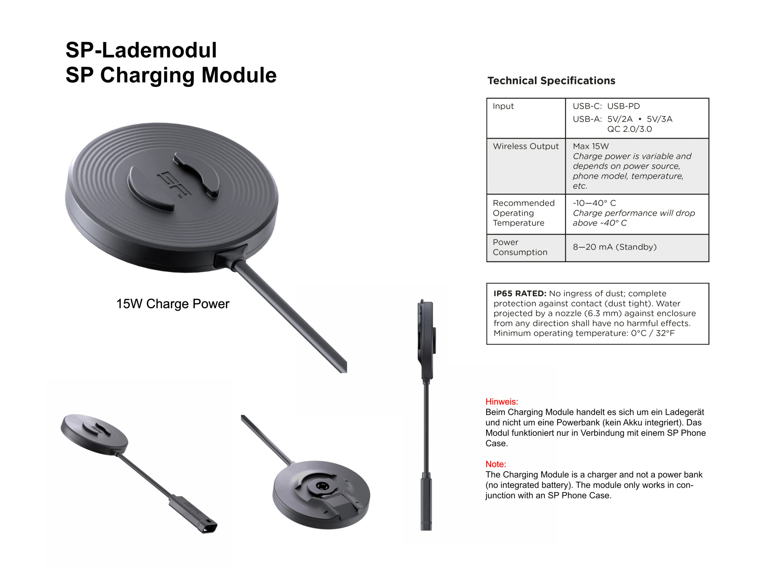 - 1× SP Connect Charging Module (Ladeleistung max. 15 Watt)